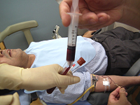 ![]() | 採血した血液を試験管に移す |