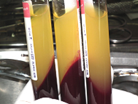 ![]() | 遠心分離が終わった試験管(3本分) |