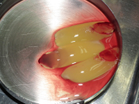 ![]() | 3本分のCGFのみを取り出したところ。 下の赤血球部分は捨てている。 |